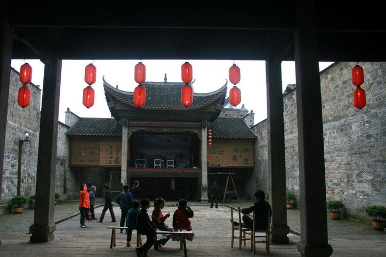 臨河戲臺(tái)幾乎天天都唱戲給烏舡子看。唱他們最愛(ài)看的湘劇,并且都是折子戲而非整場(chǎng)戲,因?yàn)檎麍?chǎng)戲常常要唱十天半月,烏舡子沒(méi)看得完就要返航。折子戲短,最切合烏舡子的??繒r(shí)日。唱的多半是“三國(guó)戲”:《空城計(jì)》、《定軍山》、《走麥城》、《三氣周瑜》,還有《黃鶴樓》、《摘梅桃》……數(shù)也數(shù)不完。戲班子都是由八元堂寧鄉(xiāng)會(huì)館從各地邀請(qǐng)來(lái)的,免費(fèi)公演。招呼戲班子的費(fèi)用由會(huì)館埋單,免不了要請(qǐng)到怡華樓、月華樓、奇珍閣等有名的飯館去吃“八大碗”,唱完戲還有夜宵招待,吃靖港的特色小吃。戲班子當(dāng)然就更賣(mài)力。烏舡子上的船老大不但愛(ài)看戲,還蠻會(huì)享受,他們把船搖得正正地對(duì)準(zhǔn)臨河戲臺(tái),和小老婆肩并肩雙雙坐船頭,一邊津津有味地看戲一邊津津有味地喝著靖港谷酒,吃著從靖港街上買(mǎi)來(lái)的香干子和鹵菜,搖頭晃腦,張嘴咋舌,樂(lè)不思蜀。也有許多古鎮(zhèn)居民來(lái)看免費(fèi)戲,他們常常爬到烏舡子上,與船老板和和老板娘一起看戲,船老板熱情大方,會(huì)讓出座位來(lái),邊看戲邊和本地居民扯談,對(duì)古鎮(zhèn)也就更加熟悉了解。
