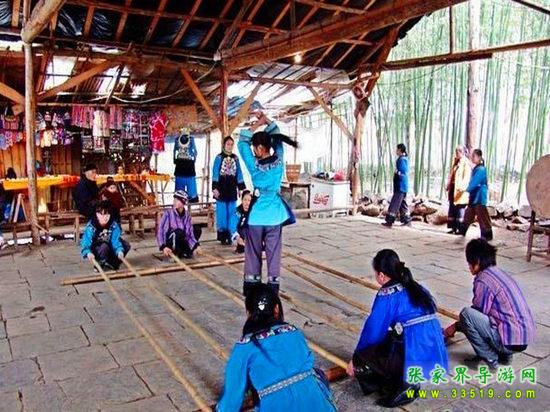 進入鳳凰香爐山苗寨必須過三道關:一是去剿匪,二是對山歌,三是喝三碗米酒。如果過不了這三道關,是不能進寨子的。剿匪就是過一道山洞(當年土匪躲藏的地方),也就是拍攝電影《湘西剿匪記》的現(xiàn)場,洞內驚險崎嶇,道路難走,還要過一條河,河面上的橋是用小木板釘成,僅一米寬,上面滴水,橋上很滑,橋下流水很急。
