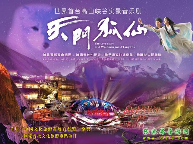 《天門(mén)狐仙》于2009年9月9月17日晚,“張家界大型山水實(shí)景音樂(lè)劇《天門(mén)狐仙》正式開(kāi)演”,世界第一臺(tái)大型山水實(shí)景音樂(lè)劇正式與國(guó)內(nèi)外觀眾見(jiàn)面。