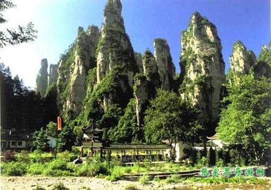 山谷中并排而立的三支山峰,有模有樣,有人叫他們“師徒取經(jīng)”,說那是唐僧、孫悟空、沙和尚三人的“合影”??催^《西游記》的朋友,可能對這片風(fēng)景有似曾相識的感覺,這兒曾是中央電視臺拍攝《西游記》的外景地。有些客人經(jīng)常問,重要人物豬八戒先生怎么沒有趕上這個“合影”呢?他忙里偷閑,在后面背媳婦去了(我們剛才不是看過“豬八戒背媳婦”那個景點(diǎn)嗎?)不小心誤了時辰。如此看來,愛情和事業(yè)有時難免會有點(diǎn)矛盾。