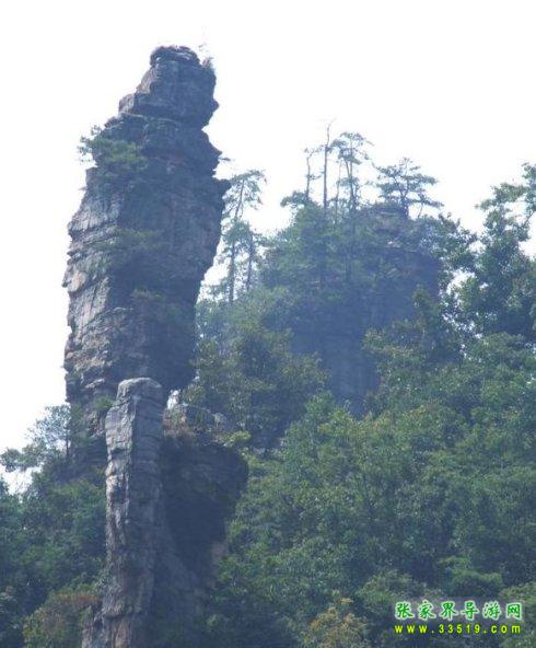 由展卷亭北上約600米,兩株高大的楓樹并立路下。透過楓樹遙望琵琶溪南面,一石峰卓立于眾峰之間,似一曲線分明的年輕女子正向西南引頸盼望。相傳其夫出征未歸,妻日夜在此等候,化為石峰。其前方石壁上有一圓洞透光,傳為此女望郎而穿。