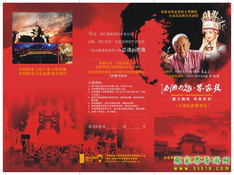 “張家界·魅力湘西”,胸懷創(chuàng)意,特立獨行,用十年時間,打造出中國旅游景區(qū)規(guī)模最大的綜合性演藝基地。“張家界·魅力湘西”初創(chuàng)于2000年,經(jīng)過十年十年如一日的潛心發(fā)展,從最開始的200人小劇場,到如今成為投資1.6億、2600座的張家界魅力湘西國際文化廣場,并獲得“國家文化產業(yè)示范基地”、“國家文化旅游重點項目”、“湖南省文化產業(yè)優(yōu)秀單位”稱號,被業(yè)內專家譽為“中國三大旅游名秀之一”。