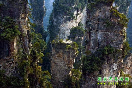 由于它地勢高,東南西三面都可觀景,透視線長,畫面寬闊,景觀層次多。在天子山的天子峰或七星山上居高臨下,俯瞰腳下成千的感受。天子山山體中部高,四周低,似一座巨型寶塔拔地而起。各類新發(fā)育的造型奇特的地貌,多集中天子山山腰, 如雄偉的瀑布、奇險的仙 人橋、巖門、溶洞,密集而陡峭的峰林石柱等,又使游人的獵奇心得到最大的滿足 。