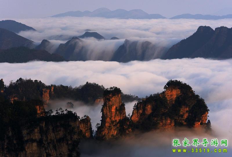 武陵源獨特的石英砂巖峰林在均屬國內(nèi)外罕見,在360多平方公里的面積中,目前所知有山峰3000多座,這些突兀的巖壁峰石,連綿萬頃,層巒疊嶂。每當雨過轉(zhuǎn)晴或陰雨連綿天氣,幽幽山谷中生出了云煙,云霧飄緲在層巒疊嶂間,云海時濃時淡,石峰時隱時現(xiàn),景象變幻萬千。霧,使晴日下堅硬的山峰變得妖嬈、飄逸和神秘。觀霧的最好季節(jié)是夏季,天子山是賞霧的最佳去處,也是攝影家常常涉足的地方。