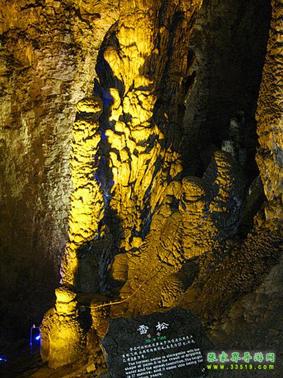 “大雪壓青松,青松挺且直。要知松高潔,待到雪化時(shí)。”這根高大的石筍就像一棵被大雪覆蓋得嚴(yán)嚴(yán)實(shí)實(shí)的松樹(shù)。它的科學(xué)名稱(chēng)叫做棕櫚狀石筍,一般只能在高大的廳堂中見(jiàn)到。據(jù)科學(xué)家測(cè)算,它已經(jīng)在悠悠的歷史長(zhǎng)河中挺立了10萬(wàn)年。有趣的是,在雪松根部還散落著許多可愛(ài)的小松果呢!