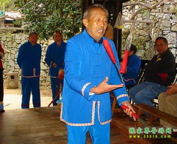三棒鼓,唐代稱三仗鼓,明沈行符《顧曲雜言》 曰:“吳下何來有打三棒鼓乞錢者,余幼時有見之也, 起于唐咸通中(公元865年)”約于明代傳入本境, 并逐漸成為群眾增聞樂見的民間藝術(shù)形式。每年春節(jié) ,藝人們結(jié)伴走村竄寨拜年,表演對象不分貧富,戶 戶必到。如遇貧寒之家,表演者將別家贈送禮品相送 ,意在人人過節(jié)歡喜。充分體現(xiàn)出土家族人熱情好客 ,心地善良的民族性格,對加強(qiáng)民族團(tuán)結(jié)有一定作用 。 三棒鼓通常由三至五人組成,一人擊鼓唱詞,一 人鑼鈸配樂,一人?;ò??;ò羧?,長一尺,舞者 左右手各持一根,將另一根拋在空中,左右開弓,擊 打空中花棒使之不落地。也有以刀代棒,以五刀代三 棒的技藝。技藝高強(qiáng)者,突然把刀拋得極高,來一個 眼花繚亂,不禁稱絕。打三棒鼓,通常有“鬧春耕” 、“收割打場”、“慶豐收”、“拜年節(jié)”四套,分 “鯉魚跳龍門”、“玉女穿梭”、“板巖漂灘”等項(xiàng) 目。打三棒鼓技巧性強(qiáng),表演時需高度集中,用力適 當(dāng),貫通一氣,并與演唱者默默配合。