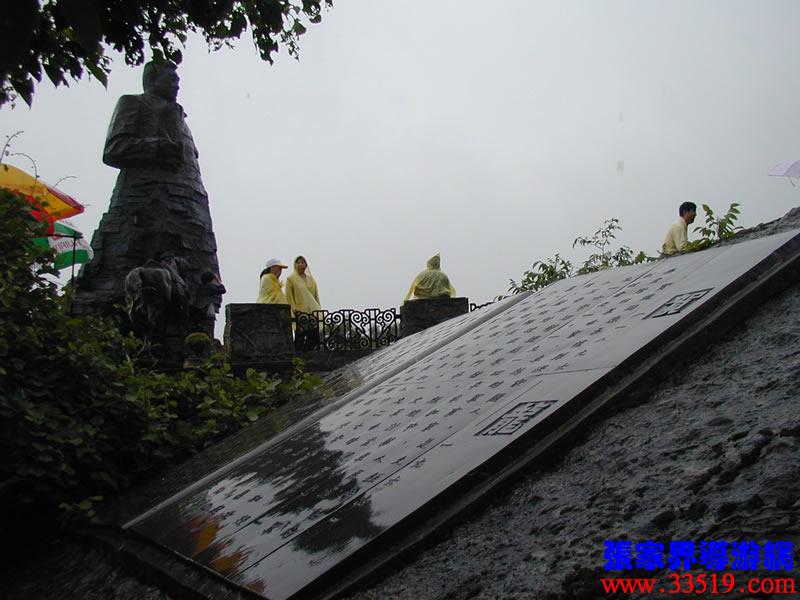 (賀龍銅像)賀龍?jiān)獛浭侵腥A人民共和國的開國元?jiǎng)祝嗣窠夥跑姷木喸煺咧?。他就出生在天子山西邊桑植縣洪家關(guān)的一個(gè)農(nóng)民家庭,從兩把菜刀砍鹽局首義起,一生充滿傳奇色彩,元帥家鄉(xiāng)流傳著無數(shù)關(guān)于他的故事與傳說。天子山一帶曾經(jīng)是賀龍、任弼時(shí)、肖克、王震等將軍打過游擊的地方。一回,賀龍?jiān)阼尮乃幻駡F(tuán)包圍了,當(dāng)?shù)乩习傩占敝猩?,把賀龍卷在斗墊里,躲過了殺身之禍。這個(gè)故事至今還在這一帶流傳。