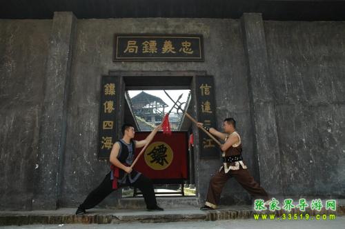 忠義鏢局,它始建于清乾隆四十二年(1777),位于洪江龍船沖,這里會館、錢莊、豪宅林立,堪稱洪江的曼哈頓。與我們在古商城看到的窨子屋不同,這是一座典型的北方四合院,前庭后院,布局嚴(yán)謹(jǐn),軸線明確,左右對稱,主次分明。前院是鏢師練功習(xí)武之地,墻壁上書有“忠”、“孝”、“禮”、“義”四字和“十八羅漢練功圖”;后院為鏢師起居和洽談生意之所,內(nèi)供奉關(guān)武大帝。忠義鏢局主要為豪商巨賈押運銀票、貨物,看家護院,坐夜守店,也開館收徒,傳授武藝。忠義鏢局的掌門人劉大鵬,湖南長沙人,幼時即入嵩山少林寺習(xí)武,不僅精通十八般武藝,而且頭腦精明,他把鏢局開在這洪江最繁華的金融一條街,足見他的經(jīng)商意識和人面廣了?,F(xiàn)在忠義鏢局現(xiàn)場表演古代押鏢、行鏢全過程,是人們了解中國古代鏢行歷史文化的活性博物館。有興趣的朋友可以去洪江古商城親自感受一下當(dāng)時押鏢的情景吧。
