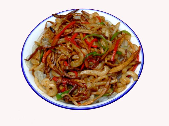 張家界草帽面》。 這個名字的由來是因為老板常年戴著草帽賣面,臊子非常香,可以添加,面是他自己加工的據說是全手工的,老板人很古怪,每天只賣那么一點,以前更古怪,只有星期1、3、5的晚上9點才有賣,想吃他家的草帽面居然還得跟他打電話問他是否心情好,出不出來賣面?預約了才不會撲空。但是就因為這點神秘,所以他家的面有些神話色彩。在汽站口百貨大樓東門對面的巷子口,一輛板上面掛了一頂草帽,那就是了,不過每天下午1點左右就沒了,要吃啊,嘿嘿,您趕早!能不能吃的上,得看您造化咯!