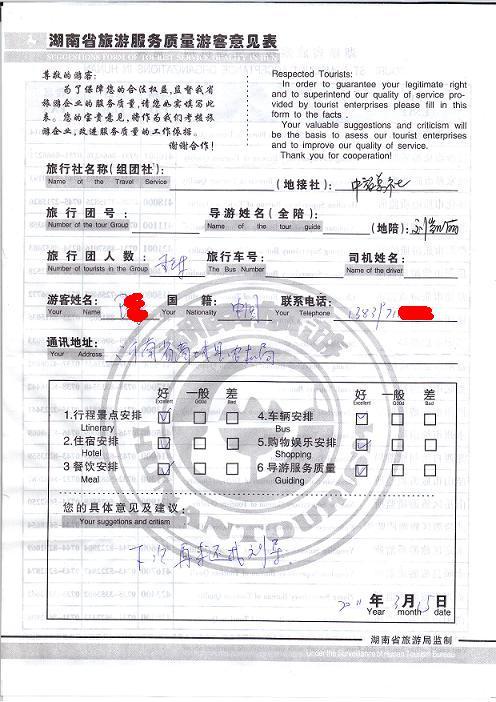2011年3月15日衛(wèi)先生旅游服務(wù)質(zhì)量反饋:下次再來還找劉導(dǎo)