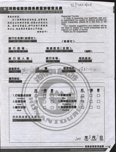 2011年3月7日周先生旅游質(zhì)量反饋