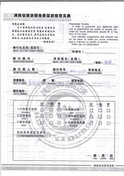 2011年6月23日姜先生一行2人旅游質(zhì)量反饋