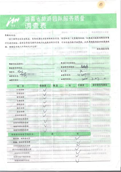 2011年7月7日胡先生一行7人旅游質(zhì)量反饋