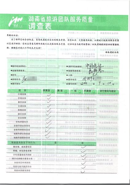 張先生一行5人旅游質(zhì)量反饋
