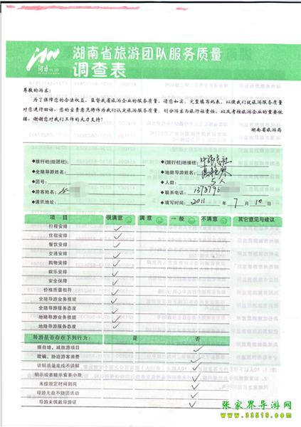 2011年7月10日李先生一行5人旅游質(zhì)量反饋