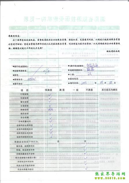2011年9月30日陳小姐一行2人旅游質量反饋