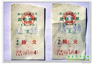 1985年8月13日上午7時,在武漢乘坐“武昌--沙市”的班車,每人6元(現(xiàn)在需要80元)。